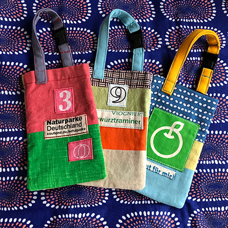 ドイツのテューテ(エコバッグ)をカスタマイズしBag,ポーチ、がま口などの布小物を製作し、アート市、アートフリマなどに参加、作品展(不定期)も開催しています。